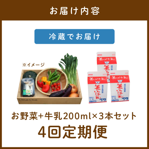 - 【定期便】合計4回お届け 有機野菜・京野菜の『京都やおよし』のお野菜&牛乳200ml×3本の詰め合わせ