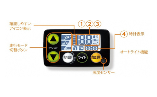 (2)「時計表示付き液晶5ファンクションメーター」搭載!液晶が大きいから走行中でも見やすくて安心!