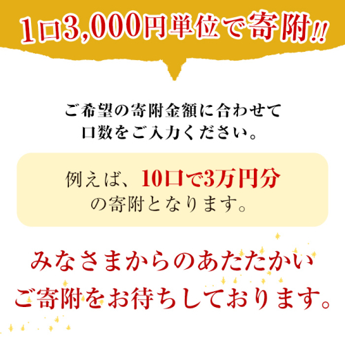 1口3,000円単位でお申込みとなります。いただいたご寄附は、東串良町の発展のために活用させていただきます。