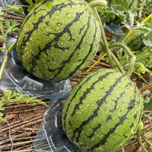 小玉スイカは、高糖度で、スイカに欠かせないシャリ感あふれる果肉を持ち、皮は約3ミリと薄く、ギリギリまで甘味を感じることができます。