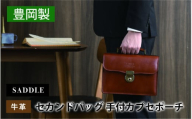 【個性的なデザイン!2つ折り形式の牛本革メンズセカンドポーチ】