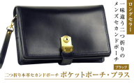 フォーマル仕様の2つ折り牛本革セカンドポーチ【ポケットポーチ・プラス・フォーマル仕様】(ブラック)