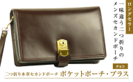 【個性的なデザイン!2つ折り形式の牛本革メンズセカンドポーチ】