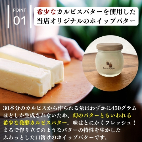 ■発酵カルピスバターを使用。にかほ産の完熟のいちじくのみを煮詰め甘酒等で風味を加え、空気をたっぷり含ませたレメデニカホオリジナルのホイップバターです。