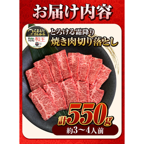 くまもと黒毛和牛 和王 バラ 霜降り 焼肉切り落とし 550g A5 A4 等級《30日以内に出荷予定(土日祝除く)》熊本県 長洲町 黒毛和牛 牛肉 冷凍 個別 取分け 小分け チャック付き バラ凍結 肉 お肉 焼き肉 焼き肉用