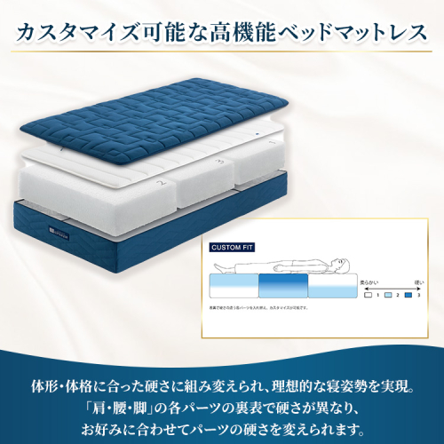 "エアファイバー(登録商標)(3分割) の表裏で硬さが異なる機能性ベッドマットレスです。