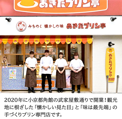 みちのくの小京都と呼ばれている秋田県仙北市角館町。プリン専門店「あきたプリン亭」は、みちのくの懐かしいプリンをコンセプトに、小さなお子様から年配の方まで幅広くお楽しみいただけるプリンをご提供いたします。
