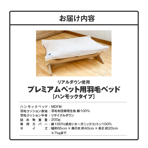 【オーガニックコットンカバー付き】リアルダウン入りプレミアムハンモック 1年中使いやすい ペットベッド 羽毛クッション カバー 2枚入り H162-036