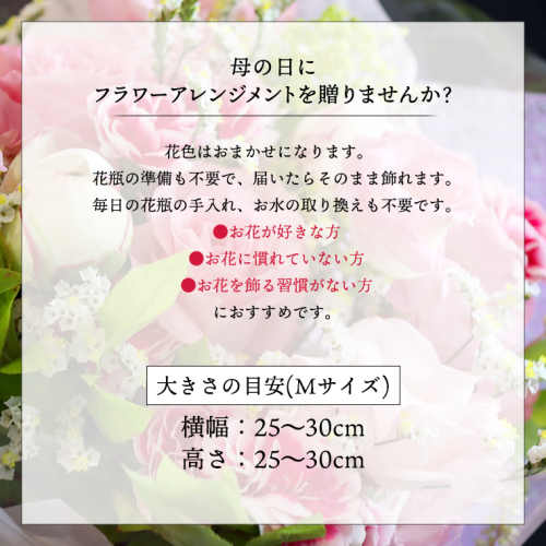 母の日のアレンジメントですが、お届け日の指定はできかねますことをあらかじめご了承ください。