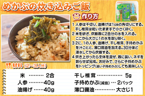 塩分を30%カットした減塩商品で、三陸産のめかぶを使用しています。