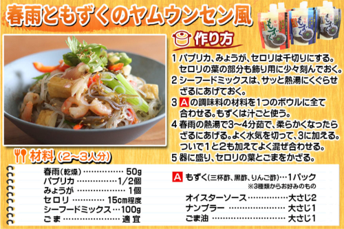 ハチヨウの人気商品『味付もずく』シリーズがスタンドパウチで新登場です。