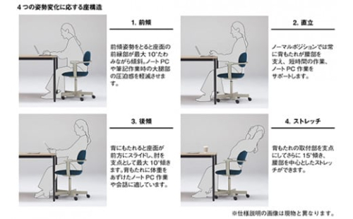 【備考】背と座が自然と動き、どんな姿勢でも座る人の身体に優しくフィット。人間工学に裏付けされたその画期的な座り心地で高い評価を得てきた“Vertebra”シリーズ。“vertebra03”は、その先進の機構をさらにアップデイト。「人間優先のオフィスチェア」という機能コンセプトを、さらに推し進めました。