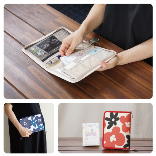 マルチケース(ファスナータイプ)は、母子手帳ケース、お薬手帳ケース、通帳ケース、年金手帳ケース、パスポートケース、カードケース、書類ケース、バッグなど様々な用途でお使いいただけます。