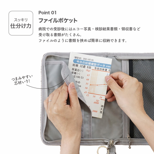 6箇所のポケットがあるため、診察券や保険証などをキレイに分けて収納できます。