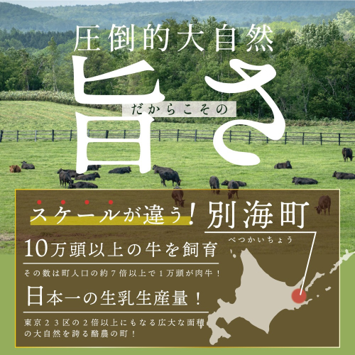 ※製造安定化のため、地場産品基準の範囲内でわずかに別海牛並みの品質の北海道産の牛肉を調達することがございます。