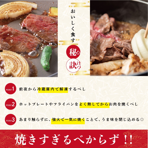 家族5人でホットプレートを使って美味しく楽しくいただきました。母は歯が悪いのでお肉が噛みきれるか心配でしたが、食べ放題の焼肉くらいの薄切りの厚みだったので、噛みきりやすくお肉の質も脂っこくなく何枚でも食べられると喜んでもらえました。また添付のタレも甘口で我が家では大好評だったので、今年もまた購入決定です!