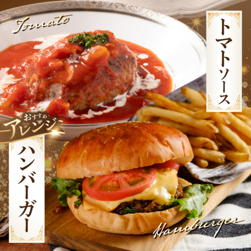 宮崎牛を100%使用したハンバーグです。 しっかり火を通していただくことで旨味が増します。 バンズに挟めば、宮崎牛ハンバーガーとしてもお楽しみいただけます。