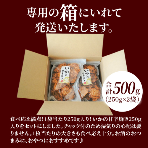 パリッと食感に甘辛だれ!噛めば噛むほど旨味が溢れる逸品 いかの甘辛焼き 500g(250g×2袋)おつまみ せんべい おつまみ 海鮮 乾物 和菓子 醤油味 お菓子 おやつ 煎餅 小分け パック チャック付き袋 海鮮せんべい えびせん家族 人気 高リピート H011-134