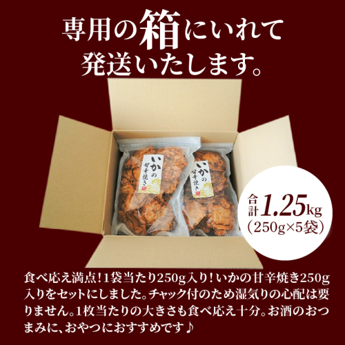 - パリッと食感に甘辛だれ!噛めば噛むほど旨味が溢れる逸品 いかの甘辛焼き 1.25kg(250g×5袋)おつまみ せんべい おつまみ 海鮮 乾物 和菓子 醤油味 お菓子 おやつ 煎餅 小分け パック チャック付き袋 海鮮せんべい えびせん家族 人気 高リピート H011-135