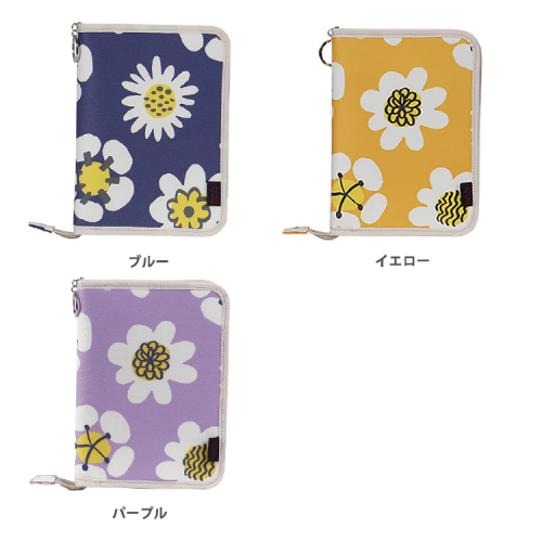 ポーチェの『マルチケース(ファスナータイプ)北欧ストック』は、鮮やかなブルー・イエロー・パープルをベースにシンプルで大きなお花をモチーフにしたデザインです。