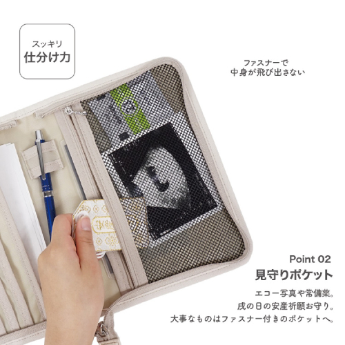 マルチケース(ファスナータイプ)は、母子手帳ケース、お薬手帳ケース、通帳ケース、年金手帳ケース、パスポートケース、カードケース、書類ケース、バッグなど様々な用途でお使いいただけます。