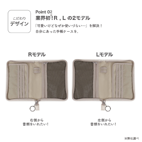 より多くの人が使いやすいようにポケット位置を変えた、R・Lの2モデルをご用意しました。