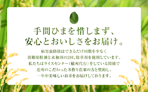 私たちはライスセンター(稲刈代行)をしている関係で近所のこだわった米作り農家の方と契約し、一年中美味しいお米をお届けしております。