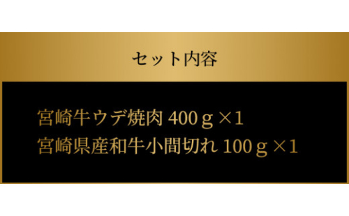 宮崎牛 ウデ焼肉400g 宮崎県産和牛小間切れ100g  K18_0025_7 1211928 - 宮崎県木城町