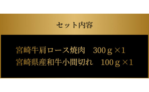 • 宮崎牛 肩ロース焼肉300g 宮崎県産和牛小間切れ100g  K18_0029_7