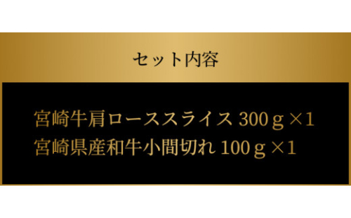 宮崎牛 肩ローススライス300g 宮崎県産和牛小間切れ100g  K18_0030_7 1211933 - 宮崎県木城町