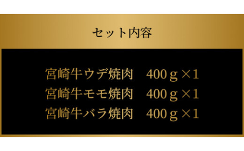 • 宮崎牛 ウデ モモ バラ 焼肉用 各400g  K18_0031_7