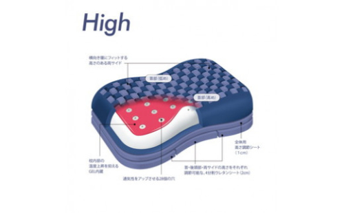 厚み2cmの高さ調節シートを両サイドと中央上下の4分割にし、横向き寝時の高さも個別に調節できるよう工夫を凝らしています。