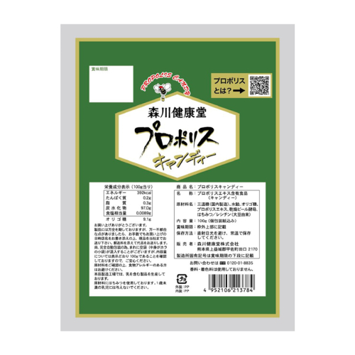 【プロポリスキャンディー】三温糖(国内製造)、水飴、オリゴ糖、プロポリスエキス、乾燥ビール酵母、はちみつ / レシチン(大豆由来)