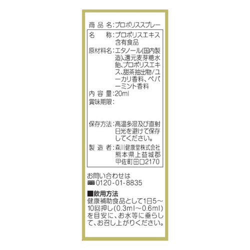 プロポリススプレー:【原料】プロポリス【原産地】ブラジル産 【加工地】熊本県