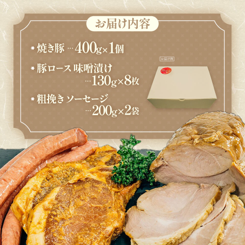【山梨レッドポークオリジナル加工品(みそ漬け、粗挽きソーセージ、焼き豚)セット】 121475 - 山梨県甲斐市
