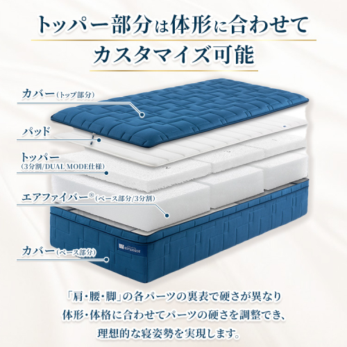 トッパー部分は、個々人の体形・体格に合った、硬さパターンにカスタマイズが可能です。