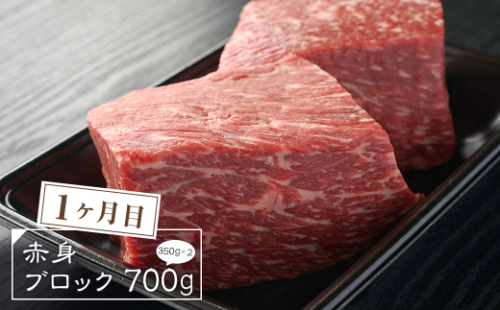 1ヶ月目では、淡路椚座牛自慢の赤身ブロックを提供いたします。各350g×2のブロックは、シンプルな調理で美味しいローストビーフを手軽に楽しんでいただけます。