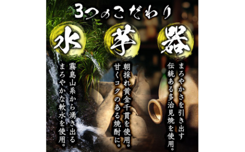 芋焼酎の根幹となる薩摩芋には成熟前の朝採れ黄金千貫を使用。澱粉の含有率が多く、甘くコクのある焼酎に仕上げました。
