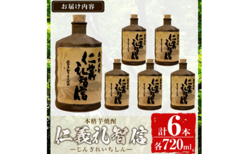 G0-010 <数量限定>本格芋焼酎「仁義礼智信」 720ml 6本セット【富八商店】酒 お酒 焼酎 芋焼酎 本格芋焼酎 本格焼酎 ギフト 多治見焼 家飲み 鹿児島 晩酌