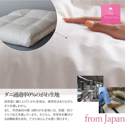 世界遺産「富士山」の麓で作られた抗菌・抗ウイルス加工の高級羽毛肌掛けふとん。