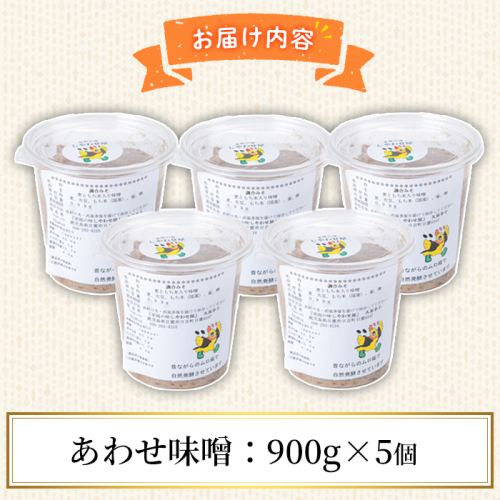 No.1077 <数量限定> 田舎味噌セット!あわせ味噌(計4.5kg・900g×5個) 国産 九州 鹿児島県産 味噌 みそ 麹 こうじ 味噌汁 みそ汁 調味料【日置市観光協会】 1222473 - 鹿児島県日置市