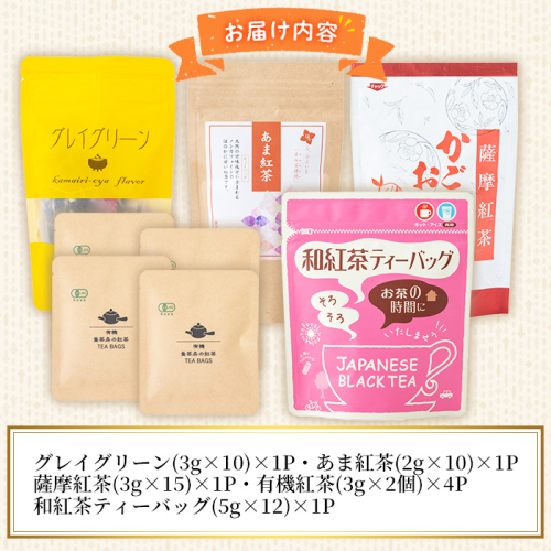 No.1080 <数量限定>ふるさと紅茶セット!薩摩紅茶・有機紅茶など5種飲み比べ! 飲料 お茶 茶 ティー ティーパック 詰合せ 飲み比べ 【日置市観光協会】