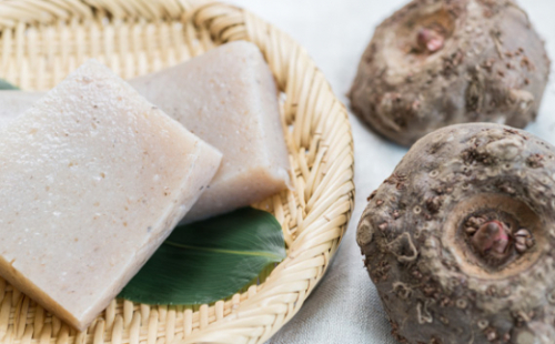 国産こんにゃく芋を100%使用し、昔ながらのバタ練り・缶蒸し製法にこだわり、手作業で製造しています。