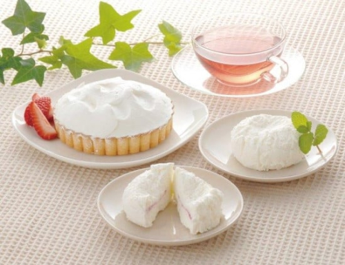ラズベリーの爽やかな酸味とコクのある生クリームのふわふわ食感スイーツ。