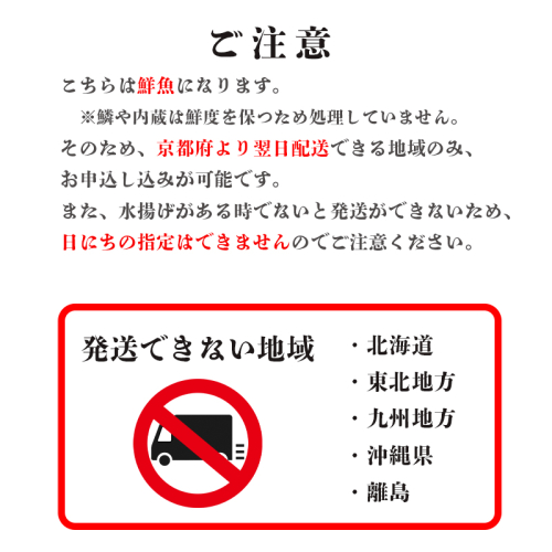 ※鮮魚の為、京都府から翌日配送できる地域以外へは配送できません。
