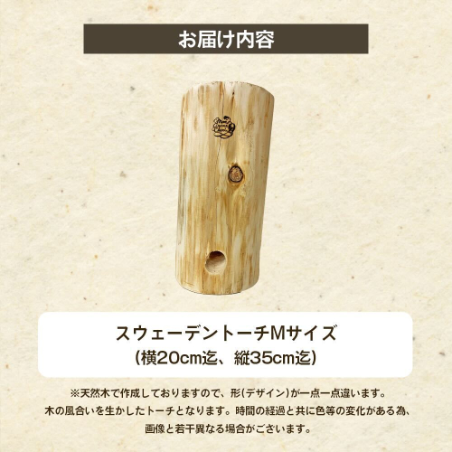 木の風合いを生かしたトーチとなります。時間の経過と共に色等の変化がある為、画像と若干異なる場合がございます。