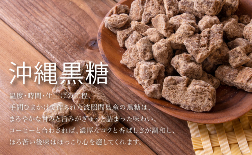 異なる環境下で育った黒糖は、甘み、塩味、香りとも特徴があり、ほろ苦い珈琲と共に違いを味わえる仕上がりとなっています。