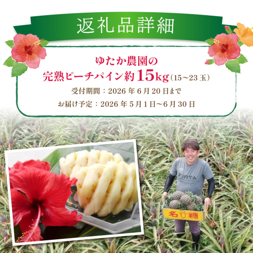 2026年 先行予約 ピーチパイン 約15kg 15~23玉 ちゅら西表島産!! ゆたか農園 完熟 パイン 果物 フルーツ パイナップル