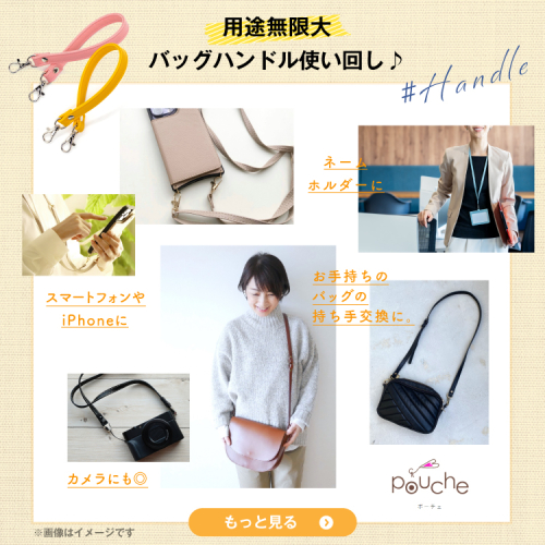 持ち手を選ぶ際は、本体の縁取りに合わせた色味を合わせてご使用いただくと引き締まっておしゃれに仕上がります。