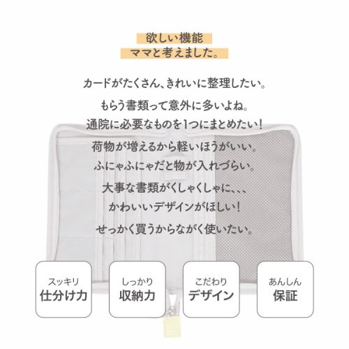 マルチケース(ファスナータイプ)は、母子手帳ケース、お薬手帳ケース、通帳ケース、年金手帳ケース、パスポートケース、カードケース、書類ケース、バッグなど様々な用途でお使いいただけます。